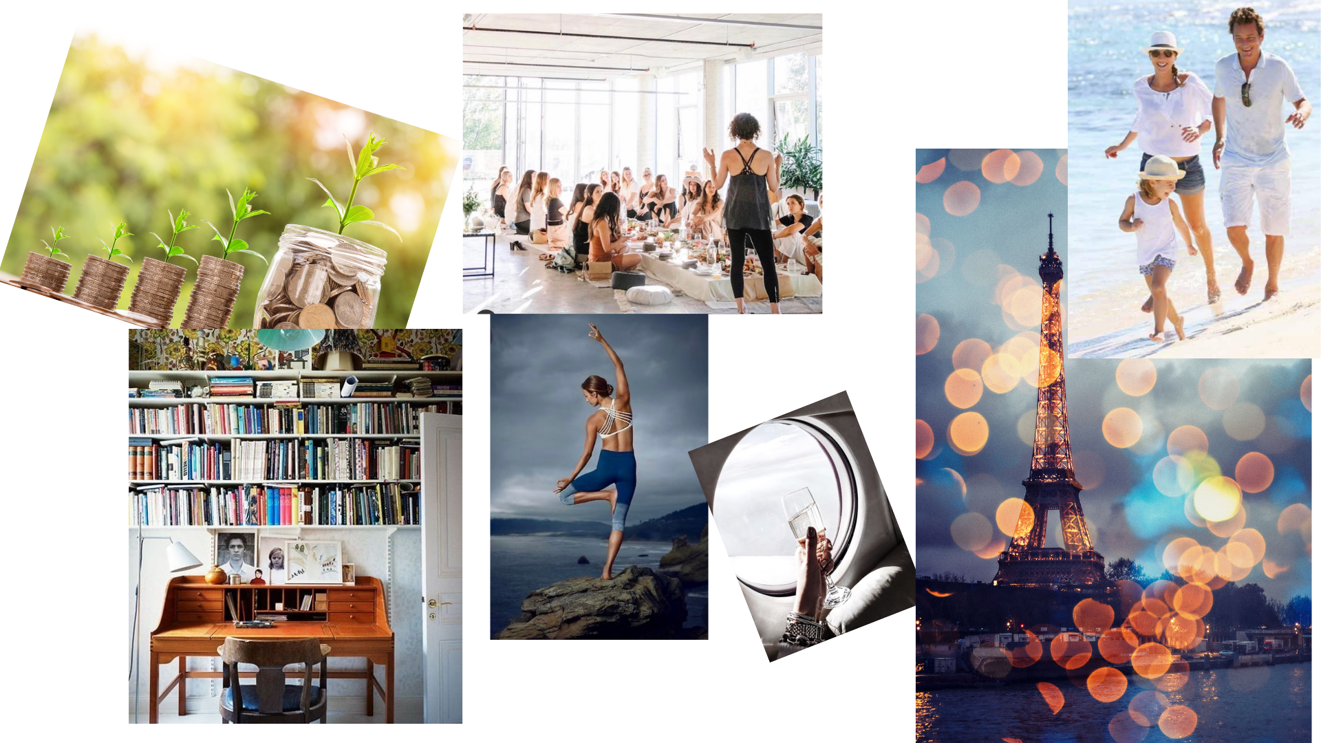 Ćwiczenie to nawiązuje do Feng Shui. Potrzebne atrybuty to kartka papieru, znajomość siatki Bagua, nożyczki, klej oraz kolorowe magazyny albo prościej i szybciej program do edycji zdjęć np. Canva.